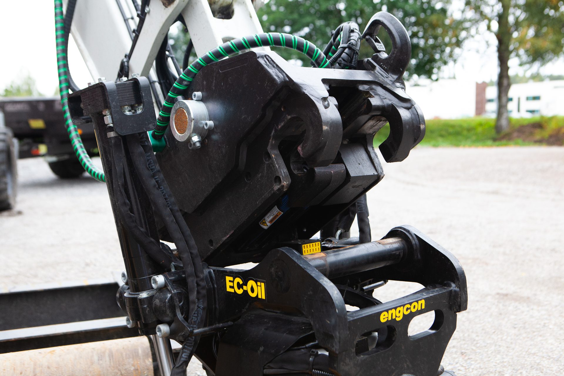 EC-Oil kobler hydraulikk, elektrisitet og sentralsmøring samtidig til tiltrotatoren og hydrauliske verktøy.