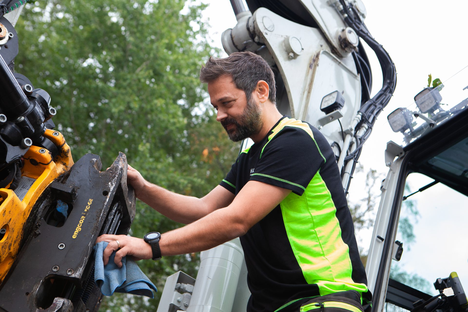 – Jeg har lang erfaring med engcon-tilter, det har vært en favoritt siden slutten av 90-tallet. EC-Oil har jeg ikke brukt tidligere, men nå bestemte jeg meg for å gå for det. Og jeg må virkelig si at systemet har imponert meg, i min bok er det rett og slett overlegent, slår Hattrem fast.